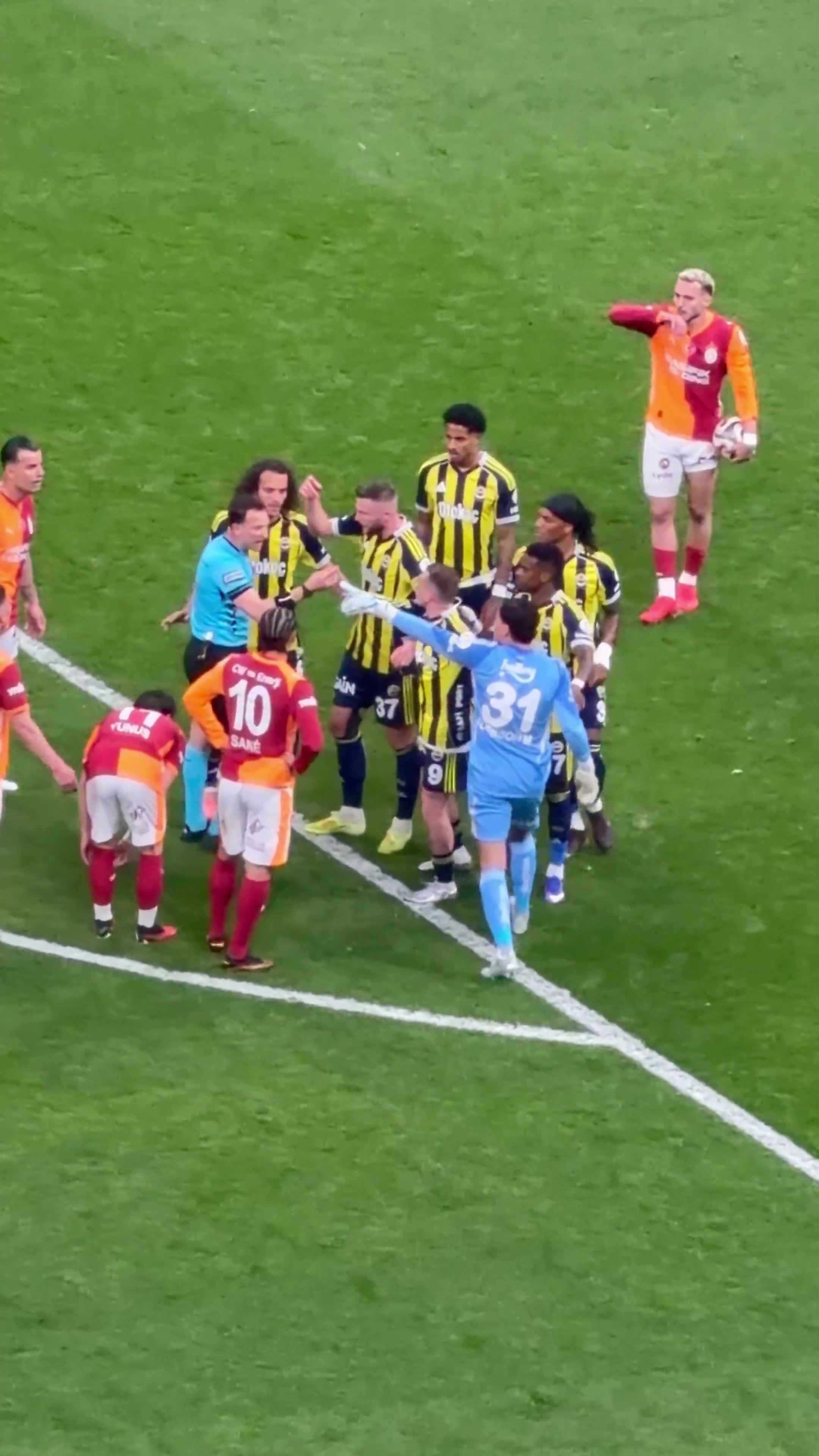 此役费内巴切门将埃德松两次顶撞裁判染红离场,他下场时肘击VAR设备。